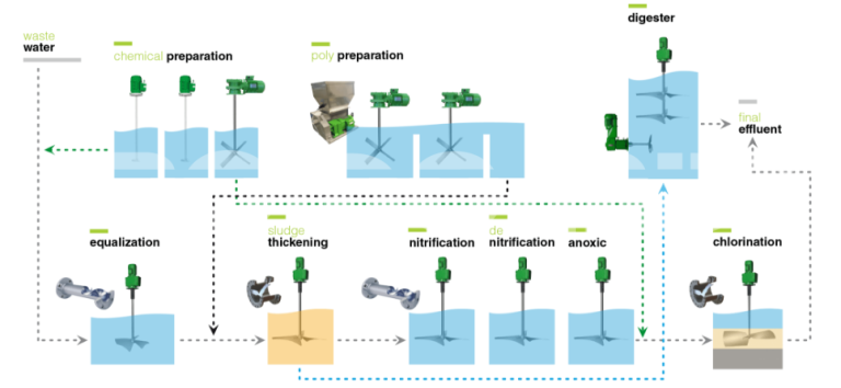 Nella maggior parte dei settori industriali l’acqua è impiegata all’interno dei processi produttivi: per far sì che questi processi vadano a buon fine è quindi necessario adottare soluzioni affidabili per la miscelazione delle acque reflue industriali.